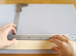 Nu ska du använda dig av ditt skjutmåtts djupmått. Lägg skjutmåttet med skalan ner