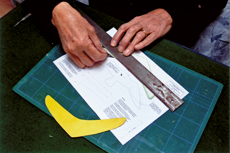 Ur en sådan skiva skär man snabbt ut sin egen kreation. Det hela tar bara ett bara minuter och sedan är det bara att sätt igång med trimningen av modellen. Trimtips finner du på ritningen som även visar ett par förslag på några skumflygare som visat sig ha goda flygegenskaper. För övrigt så hjälper det mycket om man använder sig av en pappmall när man ska skära ut sin "skummis" och att alltid har en skarpslipad skalpell för dessa "utskärningar". Så här trimmar du