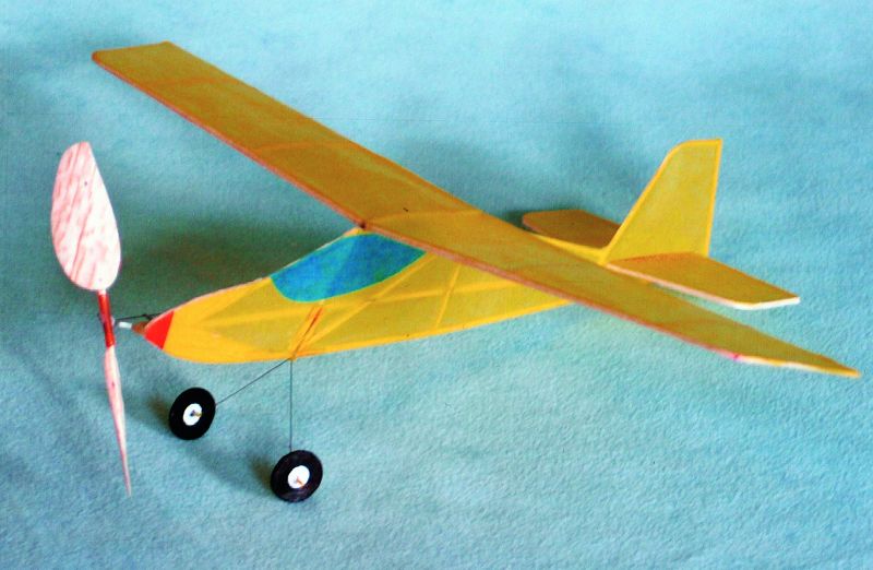 En charmig flygmaskin som flyger riktigt elegant. Så kan Sportflygar'n beskrivas. Vardagsrummet är stort nog, men den trivs också bra i lite större hallar. Det är precis som vanligt!Studera ritningen och ta del av de byggtips som den innehåller. Nästan alla lister skär du ut av ett 1 mm balsaflak. Observera att ett sådant flak ska väga cirka 10 gram. Äger du inte ett sådant flak måste du ge dig av till din hobbyhandlare, låna hans brevvåg och sätta igång med att "väga dig igenom" hans flaklager. Sträva efter att finna ett lagom lätt flak som gärna ser jämnt ut när det hålls upp mot ljuset. Läs gärna artikeln om balsaträ här på inomhusflyg.se. Du kan sedan lätt kolla att du köpt ett bra trä genom att skära till en smal bit och bryta den. Bryts då biten med en smäll, som om det vore en bit tunn frigolit - då är det inte en sådan träkvalitet som du söker. Går den däremot av med ett frasande, rivande ljud och lämnar synliga fiberbitar i brottytan är du på rätt väg.
