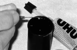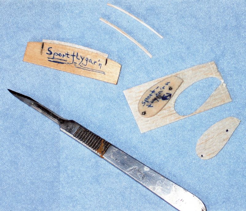 Rätt limAnvänd ett lätt lim som så kallat "balsalim". Jag kan varmt rekommendera dig att använda UHU- Hart som du spär ut med 40 - 50% aceton. Observera att det finns flera sorters UHU-lim. Du söker den som heter UHU-Hart och kommer i en blå och gul tub! Tryck ut lite lim i en lufttät burk, späd med aceton, rör om och låt stå över natten. Presto, nu har du ett bra balsalim. Skulle du senare ångra en av dina limningar då kan du relativt enkelt lösa upp din felaktiga limfog med aceton. Den enda gång som du ska använda dig av ett cyanolim till denna modell är när du limmar fast ditt propellerlager och den bakre motorkroken till kroppsbommen. Använd ytterst lite lim och rätt träkvalitet. Detta är en formel som ger dig en lätt, stark och välflygande modell. Följer du den kommer din Sportflygare att väga ungefär 1,3 gram utan gummisnodd. För att kunna ha kontroll över hur mycket lim du använder så kan du göra dig en bra "limpåförare" av en bit rundträ i vars ände du trycker in en cirka 4 cm lång bit 0,5 mm pianotråd. Nu kan du doppa ned pianotråden i din limburk och föra på precis den mängd lim som behöves, inte mer. Mjuka linjerDe ger ju alltid en kärra ett attraktivt utseende. Sportflygar'ns framkanter på vinge, stabbe och fena bidrar med sina mjuka "böjar" till detta.