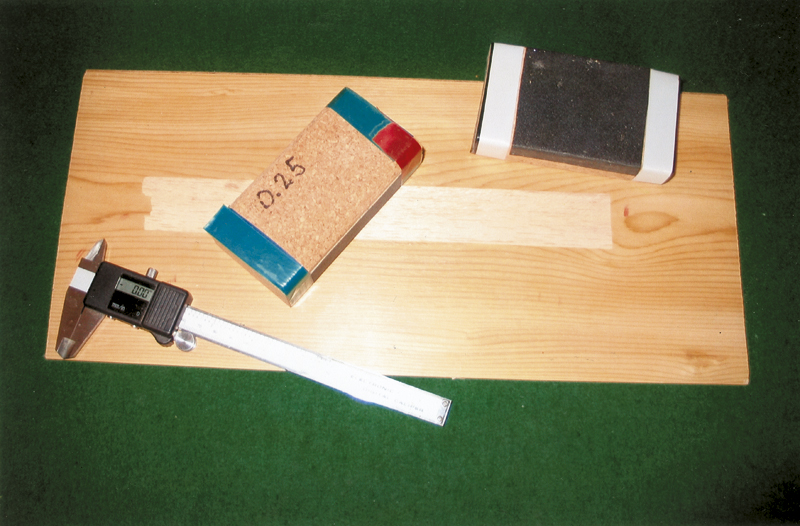 Slipa propellerbladFäst en bit 180-papper på en helt plan slipklots med tunn dubbelhäftande tejp. På klossens båda ytterkanter lindar du nu på tjock plasttejp i det antal varv som krävs för att uppnå en tjocklek på 0,25 mm. Skaffa dig ett plant underlag - t ex en glasskiva - och sätt igång med att växelvis slipa balsabitens båda sidor. Den pålindade tejpen skall löpa på var sida om balsabiten och hindra dig från att slipa bort för mycket. OBS! Slipa bara med träets fibrer och alltid ifrån handen som håller flaket. Tryck inte slipklossen hårt mot balsan. Kontrollmät då och då hur mycket du har slipat bort. Låt oss tala om njutningarSjälv måste jag tillstå att jag i högsta grad njuter av att få uppleva den härliga känslan nä en - som här - egenhändigt byggd modell sakta stiger upp genom luften medan jag sitter i min stol, slår upp en kopp kaffe ur termosen och käkar ett par mackor medan min modell sakta åter närmar sig moder jord. Detta är en verklignjutning för en inomhusflygare! (Vi har sammanställt en liten sats till Tidsflygar'n med de bitar som är svåra att få tag på, bland annat klädselfilmen och propellerlagret. Ring till Kalle Westerblad, 040-47 20 20.)