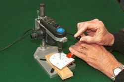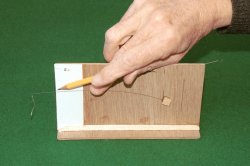 Vågen har som allting annat här i livet två sidor. Dels kan du väga från noll till 0,5 gram och dels från noll till två gram. Mät noggrant upp på plywoodskivan var de två pianotrådarna ska fästas. Skaffa dig två kalibreringsvikter. En på 0,1 gram och en på 0,5 gram, se nedan. Limma nu fast pappersbitar att rita skalorna på samt häng på 0,1-gramsvikten och märk ut dess läge på pappersskalan. Du börjar med att kalibrera den sida av vågen där du så småningom ska väga upp till 0,5 gram. Tillverka nu ytterligare en 0,1 grams vikt av en bit lödtenn och häng den på vågen och markera på skalan. Gör dig nu en ny vikt som väger 0,2 gram vilket innebär att du nu kan få fram 0,3, 0,4 och 0,5 grams markeringarna. Det som nu återstår är att kalibrera vågens andra sida på ett motsvarande sätt och det gör du ju med hjälp av din 0,5 grams vikt. Nu blir det betydligt lättare för dig att bygga lätt. Nu kan du ju väga och jämföra... Det hänger på momentet