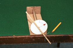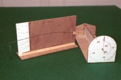 Att göra det lättare för sig"Att mäta är att veta" sägs det ibland. Denna devis gäller i högsta grad inomhusflyg. Två verktyg som är till fantastiskt stor hjälp för bygge och flygning är en våg och en momentmätare. Vågen gör att man kan bygga modellerna lagom lätt och plocka ut det allra bästa virket. Momentmätaren visar hur "hårt" gummimotorn är uppvriden. Det hjälper dig att veva upp motorn nära dess fulla kapacitet, utan att den går av. Med momentmätaren kan man också i förväg bedömma, eller ställa in hur högt modellen skall flyga. Ett viktigt hjälpmedelDet är inte alltid så lätt att bygga lätt. Men det blir betydligt enklare om man har en bra lättviktsvåg tillhanda. Studera den bifogade ritningen där du får tips om hur du mycket enkelt kan tillverka en sådan våg. Själv har jag använt mig av en bit plywood som jag fann hos min lokala byggmarknad i deras "skrotlåda" Priset? Noll!