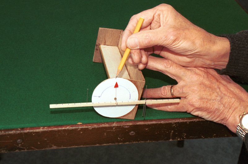 För att man ska kunna ha en bra koll på sitt gummivevande är en momentmätare ett utmärkt hjälpmedel. Det har visat sig att om man tillämpar tekniken att alltid veva fullvarv och sedan backa till det önskade momentet blir resultatet att man då får cirka 20% mera varv på sin snodd än om man bara vevar upp sin motor till det önskade momentet. Teoretiskt kan man anta att 20 % mer varv innebär cirka 15-25% längre flygtid och lång flygtid önskar du ju alltid. Så sätt igång och bygg dig denna momentmätare. Du kan klippa ut och använda dig av den bifogade skalan därför att vilken enhet som står på momentmätarens skala egentligen inte spelar någon roll. Det viktiga är att kunna skilja "mycket" från "ganska mycket". Men om man vill jämföra med andras resultat kan det vara bra med någon standardiserad enhet. En enhet som visat sig behändig är g·cm (gramcentimeter, gcm), dvs ett grams vikt på hävarmen en cm. Det är ingen SI-enhet, men smidig att använda och den enhet som många svenska inomhusflygare graderat sina momentmätare i. KalibreringBörja med att fästa en tom pappersskala på mätartavlan och rita ett märke på skalan där visaren pekar. Detta är "noll". Tag en 22 cm lång balsalist, t ex 4x4 mm. Sätt ett märke på listens mitt och markera sedan varje cm ut till respektive ände. Sätt fast listen på momentmätarens gummikrok. Listens mitt ska sitta vid kroken. Balansera balsalisten så att momentmätarens visare står på noll när balsalisten är vågrät. Tag två knappnålar och fäst dem vid var sin sida av balsalistens mitt, en cm ut från mitten. Häng en vikt på 1 gram vid den högra nålen så att momentmätarens visare rör sig medurs. Vrid nu momentmätaren moturs så att balsalisten med vikten blir vågrät. Sätt ett streck på mätartavlans skala där visaren pekar. Detta streck motsvarar 1 gcm. Flytta ut båda nålarna till två cm från mitten och upprepa proceduren för att markera två gcm. Fortsätt så till 10 gcm. Låt vikten och nålarna sitta kvar och sätt fast ett par nya nålar en cm från mitten och häng dit ett ytterligare gram. Detta motsvarar 11 gcm. Flytta ut nålarna och vikten en cm för 12 gcm och så vidare. Fortsätt att markera skalan på samma sätt till 30 gcm. Gratulerar till en kalibrerad momentmätare, nu är det bara att veva och flyga!